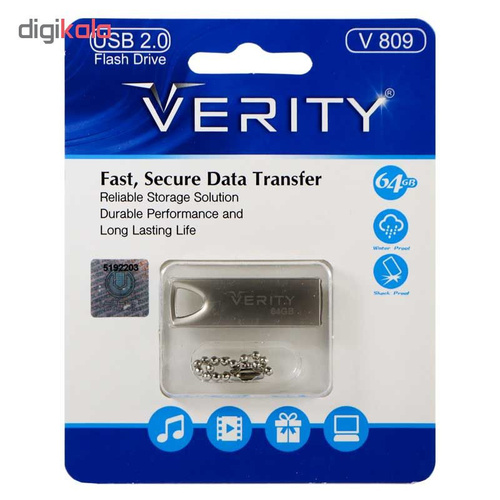 فلش مموری VERITY V809 با بدنه فلزی و مقاوم در برابر ضربه خود می تواند یک فلش با دوام و مناسب برای بسیاری افراد باشد. همچنین این فلش در برابر شوک و لرزش هم مقاوم شده تا استحکام بار هم بالاتری داشته باشد. در حال حاضر فلش ها به دلیل داشتن حجم و ابعاد کوچک و در عین حال ظرفیت های مناسبی که دارند، به یکی از معمول ترین و اصلی ترین ابزار انتقال اطلاعات شده اند. به طور مثال شما می توانید چندین فیلم با کیفیت بسیار بالا را روی یک فلش 64 گیگابایتی ریخته و به سادگی و خیلی راحت آن را هر جا که می روید همراه خود داشته باشید. به همین دلیل بسیاری از افراد امروزه حتی چندین فلش را همراه خود دارند!